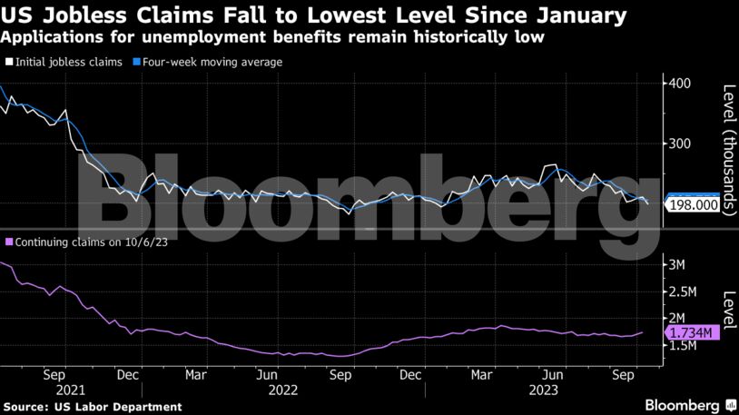 Οι νέες αιτήσεις μειώθηκαν στις 198.000 την δεύτερη εβδομάδα του Οκτωβρίου σύμφωνα με δεδομένα του Υπουργείου Εργασίας των ΗΠΑ, πολύ παρακάτω από τις εκτιμήσεις των αναλυτών, σύμφωνα με το Bloomberg.