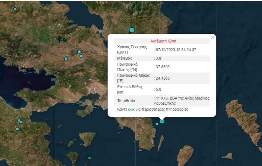 Ταρακουνήθηκε η Αττική – Σεισμός 3,7 Ρίχτερ στη Λαυρεωτική