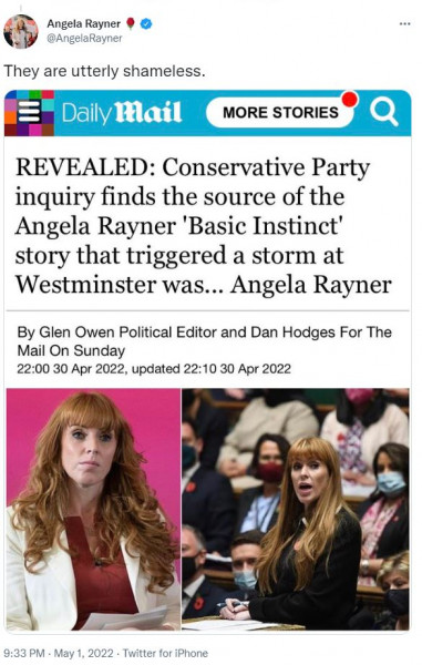 Tories accuse Labour’s Angela Rayner of Basic Instinct ploy to distract Boris Johnson: pic.twitter.com/4FOmi2r8HK