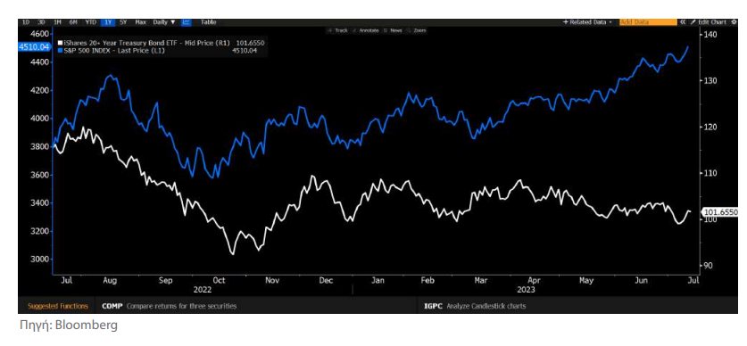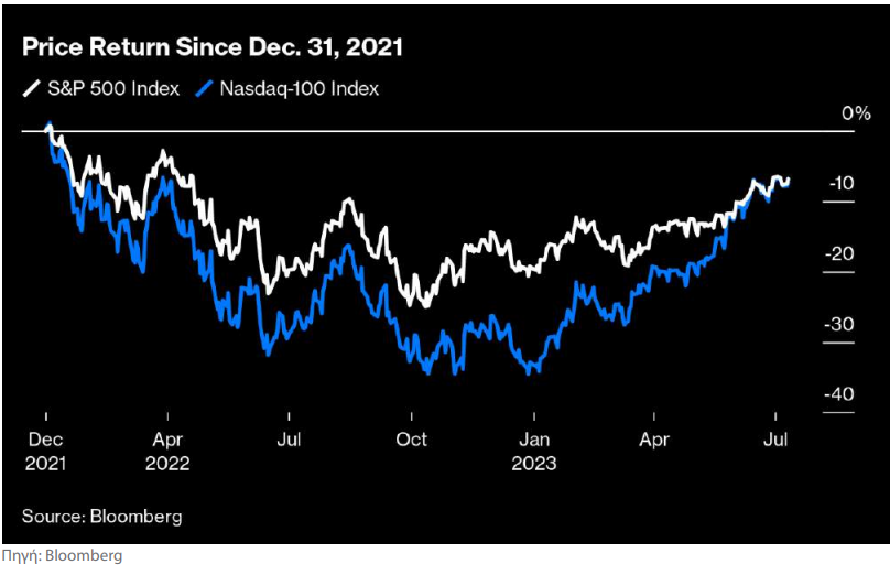 Σύμφωνα με το Bloomberg, οι εκτιμήσεις για τα κέρδη των Apple, Amazon, Microsoft, Alphabet και Nvidia, αναφέρουν αύξηση κερδών κατά 16% για το δεύτερο τρίμηνο (μόλις ξεκίνησαν οι ανακοινώσεις) και συνεχή αύξηση για τα επόμενα δυο τρίμηνα, δηλαδή για το σύνολο του 2023. Αυτό είναι μια τάση την οποία δεν πρέπει κανείς να αγνοήσει.