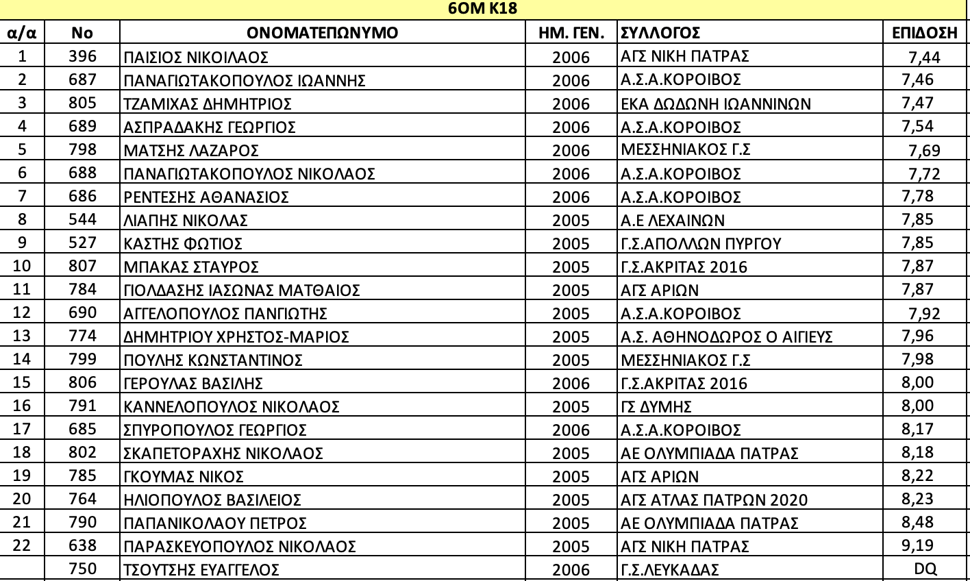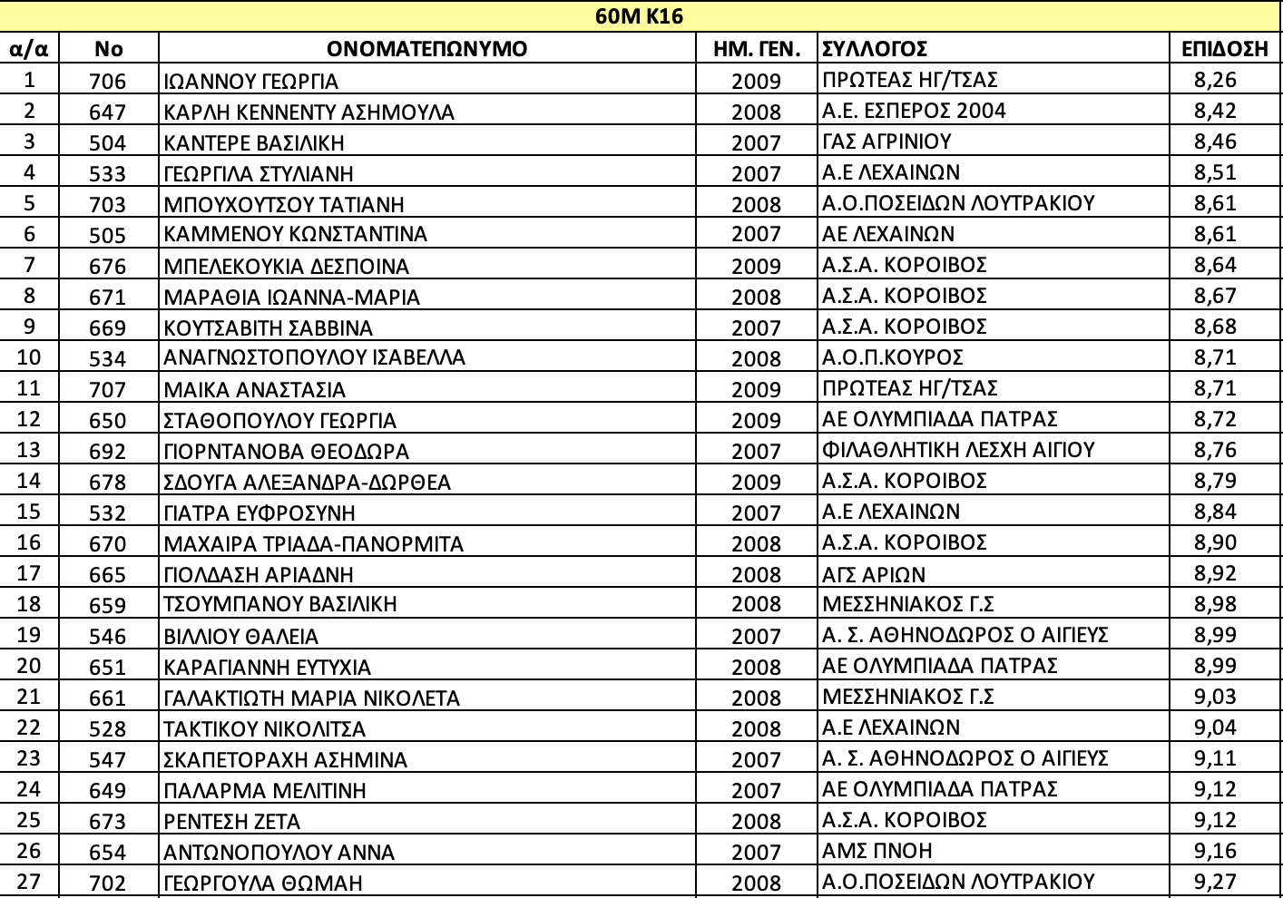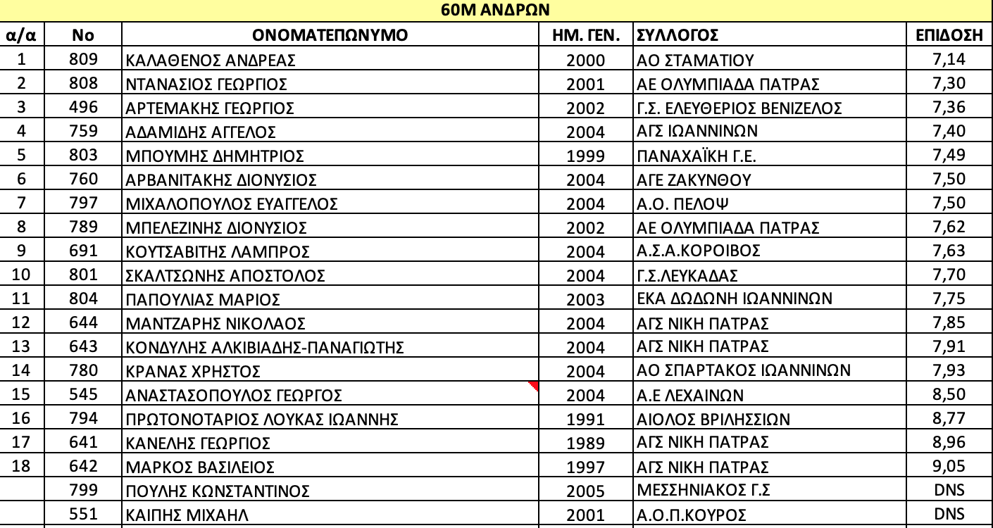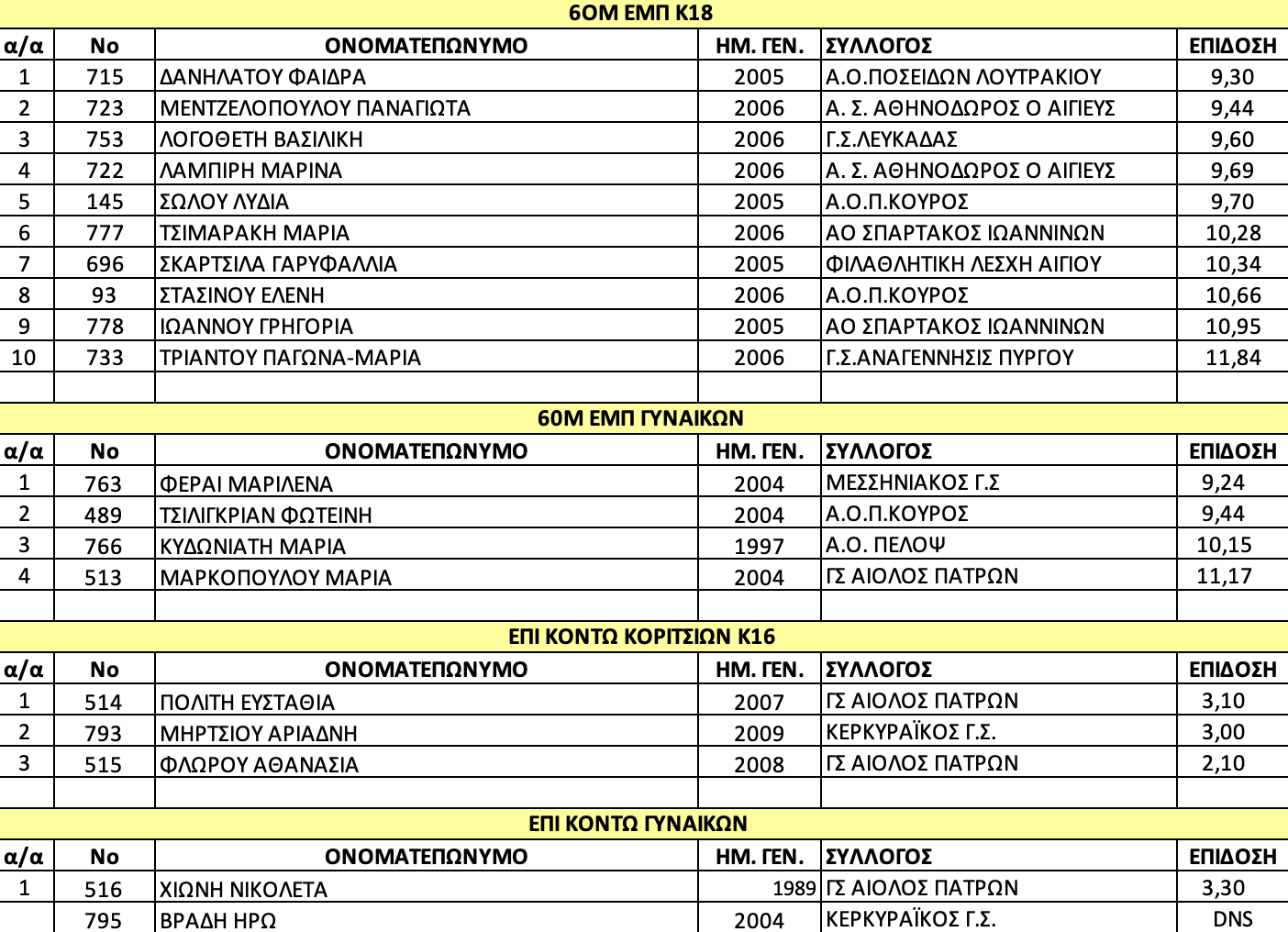 Η τρίτη ημερίδα κλειστού στίβου της ημέρας πραγματοποιήθηκε στο κλειστό προπονητήριο Λαδόπουλου στην Πάτρα. Ακολουθούν τα αναλυτικά αποτελέσματα από όλα τα αγωνισματα.