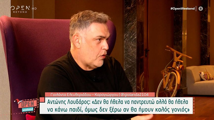 Ο Αντώνης Λουδάρος παραχώρησε συνέντευξη στην εκπομπή OPEN Weekend και την Γιολάντα Ελευθεριάδου – Καραγιώργου ανήμερα τα Χριστούγεννα. Ο δημοφιλής ηθοποιός αναφέρθηκε, μεταξύ άλλων, στην προσωπική του ζωή εκφράζοντας την επιθυμία να αποκτήσει ένα παιδάκι.