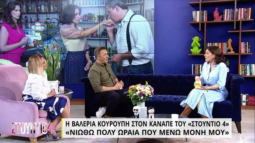 Στον καναπέ του «Στούντιο 4», της εκπομπής της ΕΡΤ, με παρουσιαστές τη Νάνσυ Ζαμπέτογλου και τον Θανάση Αναγνωστόπουλο βρέθηκε η Βαλέρια Κουρούπη, η οποία μίλησε για την πορεία της στο θέατρο, αλλά και για τη ζωή της.