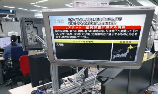 Οι αρχές της Ιαπωνίας έδωσαν εντολή μέσω του συστήματος J-Alert στους κατοίκους της Χοκάιντο να σπεύσουν αμέσως σε καταφύγια καθώς υπήρχε κίνδυνος να πληγεί η νήσος από πύραυλο της Βόρειας Κορέας. ΠΗΓΗ in.gr