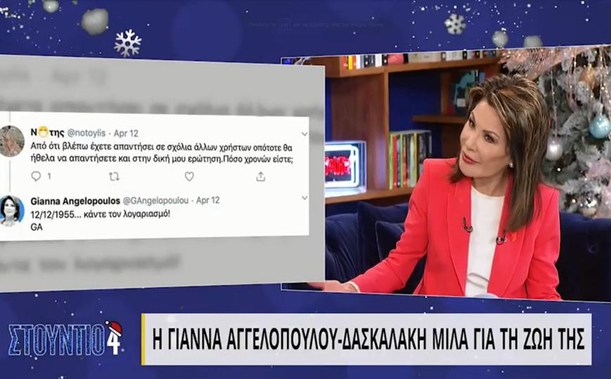 Στην ηλικία της και τις παρεμβάσεις που έχει κάνει στην εξωτερική της εμφάνιση αλλά και την σχέση της με τον χρόνο αναφέρθηκε η Γιάννα Αγγελοπούλου – Δασκαλάκη η οποία βρέθηκε καλεσμένη στο πλατό της εκπομπής «Στούντιο 4» της ΕΡΤ, απέναντι από την Νάνσυ Ζαμπέτογλου και τον Θανάση Αναγνωστόπουλο το μεσημέρι της Τετάρτης (01/12).
