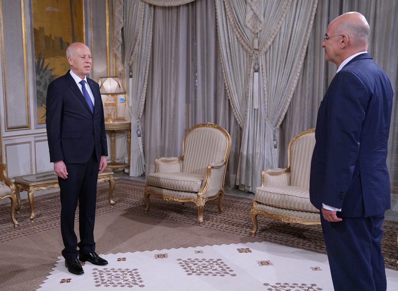 Ο Νίκος Δένδιας στις δηλώσεις του σημείωσε ότι είχε με τον Τυνήσιο πρόεδρο μια μακρά και ειλικρινή συζήτηση για τις προοπτικές των δύο χωρών.