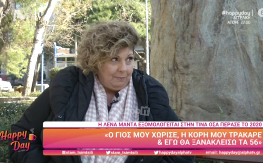 «Ήταν δύσκολα το 2020. Δεν θα κλείσω τα 57 φέτος, αλλά ξανά τα 56. Όλα μας έτυχαν το 2020, ο γιος μου χώρισε, κόρη μου τράκαρε. Μετακόμισα σε μικρότερο σπίτι γιατί δεν ήξερα τι να κάνω το “μεγαθήριο” και ξαφνικά άρχισαν να μαζεύονται τα παιδιά. Φοβάμαι πολύ τον κορονοϊό. Πέρασα δύσκολα λόγω του φόβου μου για τον Γιώργο που έχει ΧΑΠ. Ο ρυθμός της ζωής μου με τον κορονοϊό δεν ανατράπηκε ιδιαίτερα γιατί είμαι σπιτόγατα. Το σούπερ μάρκετ είναι η εβδομαδιαία μου έξοδος, φτιάχνω μαλλί και βάφομαι για να πάω», ανέφερε αρχικά η Λένα Μαντά.