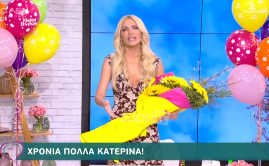 Όμως οι συνεργάτες της, της είχαν ετοιμάσει μια έκπληξη καθώς ακούστηκε το «χρόνια πολλά». Μια μεγάλη ανθοδέσμη, μπαλόνια και τούρτα μπήκαν στ πλατό.