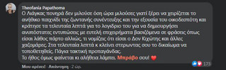 Το ήθος όμως φαίνεται κι αλήθεια λάμπει. Μπράβο σου!» έγραψε η Θεοφανία Παπαθωμά στο σχόλιο που «άφησε» κάτω από την ανάρτηση του Γρηγόρη Πετράκου.