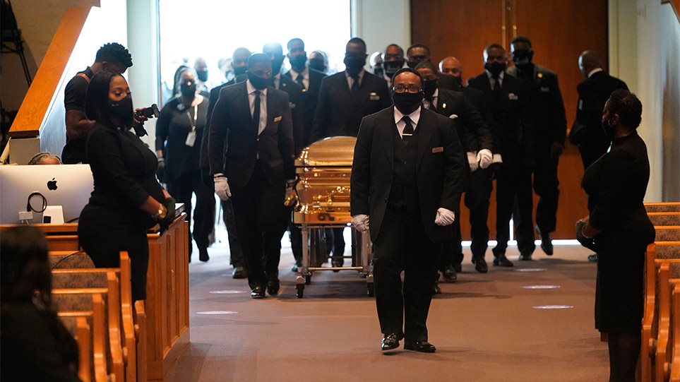 Η κηδεία του Τζορτζ Φλόιντ ξεκίνησε στο Χιούστον, στο Τέξας, 15 ημέρες μετά τον θάνατο του Αφροαμερικανού από ασφυξία από έναν λευκό αστυνομικό, με τη δολοφονία του να προκαλεί ογκώδεις διαδηλώσεις στις ΗΠΑ.