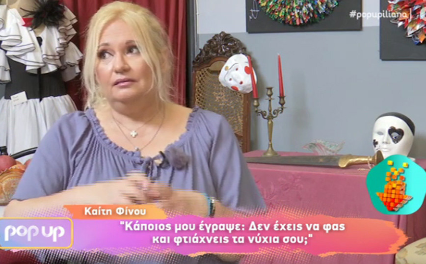 Στην κάμερα της εκπομπής Pop Up παραχώρησε συνέντευξη η Καίτη Φίνου η οποία απάντησε στα αρνητικά μηνύματα που δέχθηκε, το «Σπίτι του Ηθοποιού» αλλά και την προσβολή που έχει δεχθεί από συνάδελφο της.