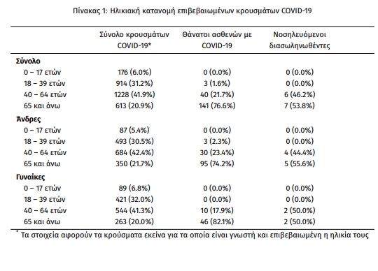- τo 69.2% έχει υποκείμενο νόσημα ή είναι ηλικιωμένοι 70 ετών και άνω.