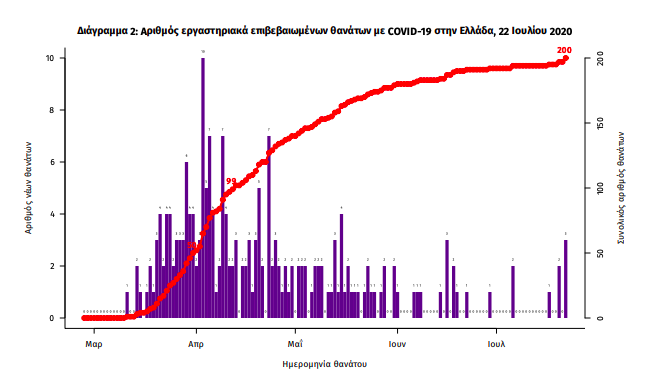 Οι νέοι θάνατοι ασθενών με COVID-19 είναι 3, ενώ από την έναρξη της επιδημίας έχουν καταγραφεί συνολικά 200 θάνατοι. Η μέση ηλικία των ασθενών που απεβίωσαν είναι 76 έτη.