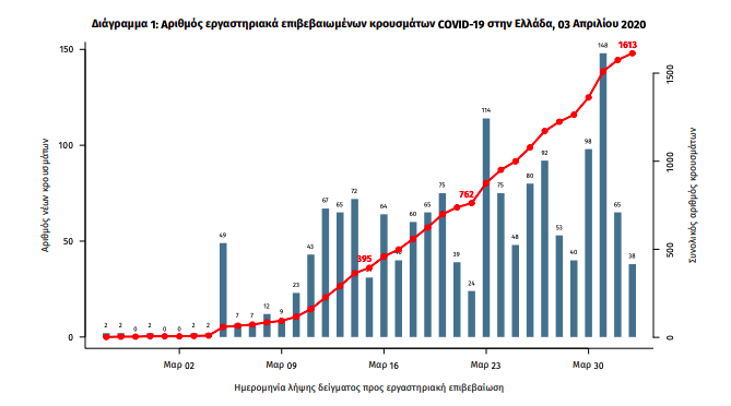 Δείτε το διάγραμμα με την επιδημική αύξηση των επιβεβαιωμένων κρουσμάτων COVID-19 στην Ελλάδα: