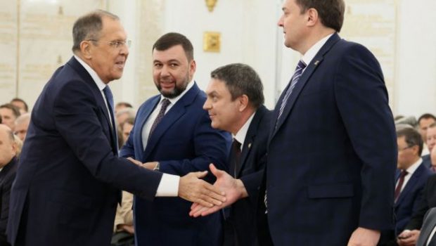 Την ελπίδα του ότι οι σοβαροί πολιτικοί στη Δύση θα μελετήσουν ενδελεχώς τη χθεσινή (Παρασκευή) «ιστορική ομιλία» του προέδρου της Ρωσίας Βλαντίμιρ Πούτιν, εξέφρασε ο ρώσος υπουργός Εξωτερικών, Σεργκέι Λαβρόφ (αριστερά, στη φωτογραφία του Sputnik/Mikhail Metzel via Reuters, επάνω, από την τελετή στο Κρεμλίνο για την προσάρτηση των ουκρανικών εδαφών).
