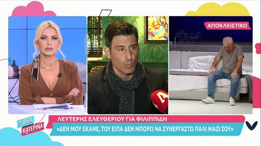 Συνέντευξη στην εκπομπή «Super Κατερίνα» της Κατερίνας Καινούργιου έδωσε ο Λευτέρης Ελευθερίου την Τρίτη (09/11) και εκεί μίλησε για τη συνεργασία του με τον Πέτρο Φιλιππίδη. Παράλληλα, έκανε λόγο για τη δικαστική διαμάχη ανάμεσα στον τραγουδιστή Κώστα Δόξα και την πρώην σύζυγό του, Μαρία Δεληθανάση, ενώ αναφέρθηκε και στο «YFSF», όπου υπήρξε διαγωνιζόμενος.