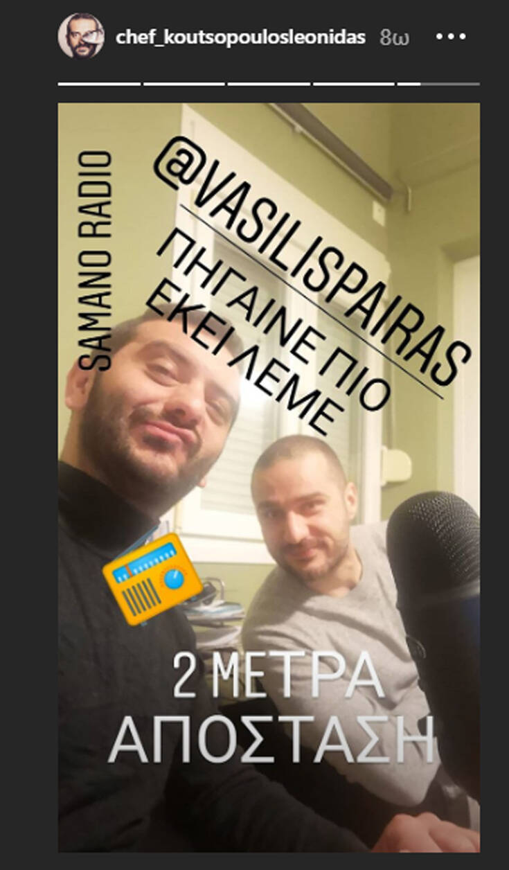 Μάλιστα, ο σεφ έκανε και σχετικές αναρτήσεις στο λογαριασμό του στο Instagram, όπου συστήνει στον κόσμο με τον δικό του τρόπο, πως πρέπει να τηρούν μεταξύ τους, την απόσταση των 2 μέτρων.