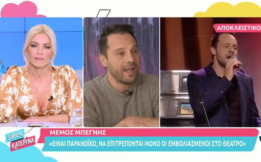 Με αφορμή τις μουσικές βραδιές που προετοιμάζει στο πλευρό της Τάνιας Τρύπη, ο Μέμος Μπέγνης παραχώρησε συνέντευξη στην κάμερα της εκπομπής «Super Κατερίνα και μίλησε για τα νέα μέτρα τα οποία ισχύουν στο θέατρο λόγω του κορονοϊού αλλά και για τις απόψεις του Γρηγόρη Πετράκου που προκαλούν ποικίλα σχόλια.