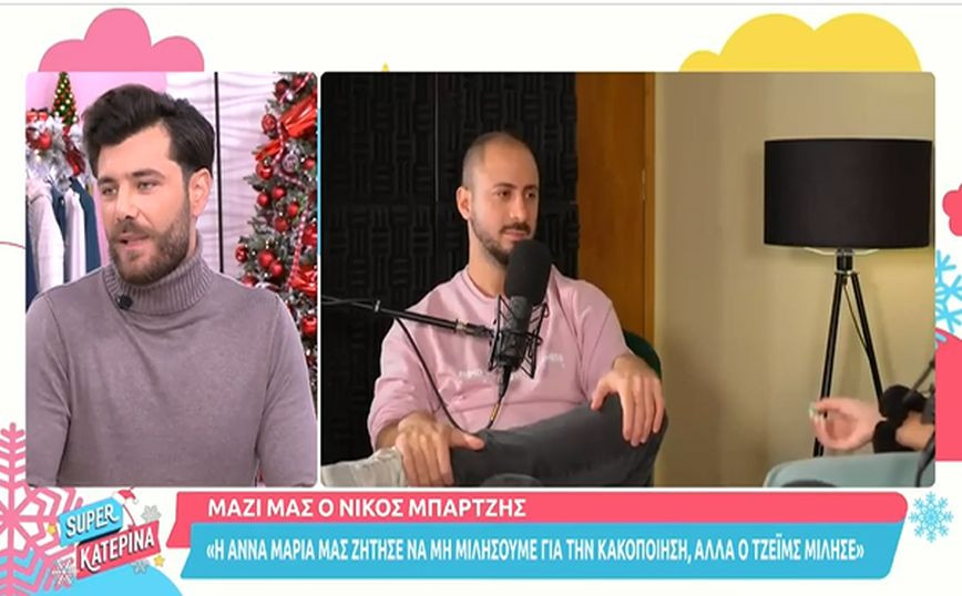 «Όταν γίνεται κάτι σημαντικό, όπως το post της Άννας Μαρίας Βέλλη και μας στέλνει η κοπέλα μήνυμα σε μία ομαδική συνομιλία και μας λέει κάτι πολύ φυσιολογικό, ότι δεν θέλει να πάρουμε θέση σε αυτό το πράγμα… Την επόμενη ημέρα της ανάρτησης έβαλε ένα πολύ ωραίο μήνυμα που έλεγε: “σας παρακαλώ, όταν νιώσω έτοιμη να πω τα παρακάτω, θα βγω να μιλήσω”. Αρχικά να πω ότι δεν μπορεί κανείς να μπει στην ψυχολογία της. Ενώ μας ζήτησε λοιπόν, να μη βγούμε να μιλήσουμε, μετά από δύο μέρες βλέπουμε στη Σίσσυ Χρηστίδου την συνέντευξη του James» είπε αρχικά ο Νίκος Μπάρτζης στην εκπομπή «Super Κατερίνα.