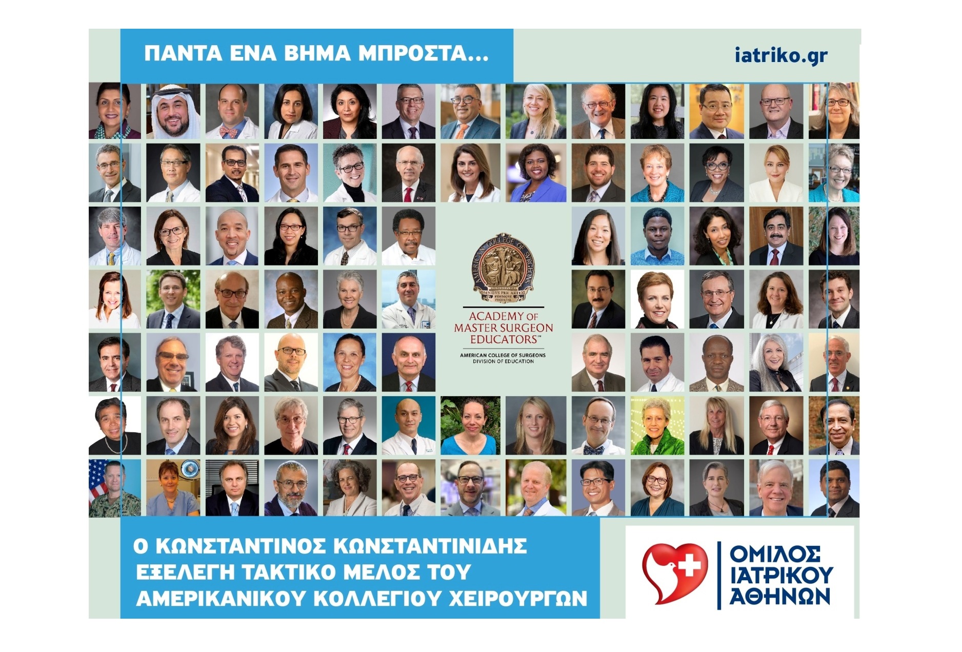 Σημαντική διάκριση για τον εξέχοντα Έλληνα ιατρό. Εξελέγη από τον μεγαλύτερο επιστημονικό και εκπαιδευτικό οργανισμό χειρουργών στον κόσμο, το Αμερικανικό Κολλέγιο Χειρουργών, ως ένας από τους κορυφαίους χειρουργούς εκπαιδευτές παγκοσμίως