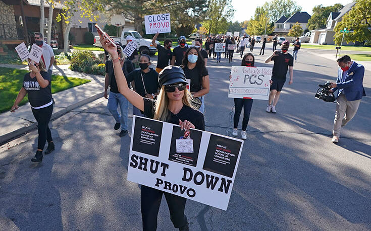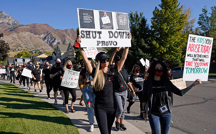 Σε βίντεο που αναρτήθηκε στα μέσα κοινωνικής δικτύωσης, οι διαδηλωτές διακρίνονται να κάνουν σιωπηλή πορεία διαμαρτυρίας – για να υποδηλώσουν πώς τα σχολεία σιώπησαν τα θύματά τους – ενώ κρατούν πανό που αναγράφουν συνθήματα, όπως «Τα παιδιά πάνω από τα κέρδη», «Κλείστε το Provo» και φορούν to-shirt με τη λέξη «επιζών».