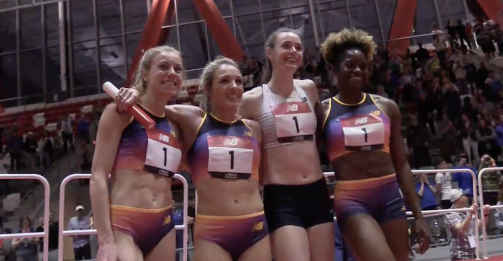 Στο Όλστον της Βοστόνης μπροστά στο κοινό, η γυναικεία ομάδα του New Balance έκανε παγκόσμιο ρεκόρ στην σκυταλοδρομία 1200μ – 400μ – 800μ – 1600μ ολοκληρώνοντας σε 10:33.85. Η Χέδερ Μακλίν (1200μ – 3:14.92), η Κένταλ Έλις (400μ – 52.05), η Ρόσιν Γουίλις (800μ – 2:03.30) και η Ελ Πουριέ Σεντπιέρ (1600μ – 4:23.55) ήταν οι πιο γρήγορες και κατέρριψαν το ρεκόρ που είχε κάνει η ομάδα του Nike Union Athletics Club πριν δύο μήνες στο Σποκέιν με 10:39.91. Η επίδοση που έκαναν οι αθλήτριες είναι επίσης καλύτερη και από το παγκόσμιο ρεκόρ στον ανοιχτό (10:36.50) που είχε σημειώσει η αμερικανική ομάδα με τις Τρενίρε Μόζερ, Σάνια Ρίτσαρντς-Ρος, Άτζι Γουίλσον και Σάνον Ρόουμπερι στους αγώνες Wolrd Relays το 1015 στις Μπαχάμες.