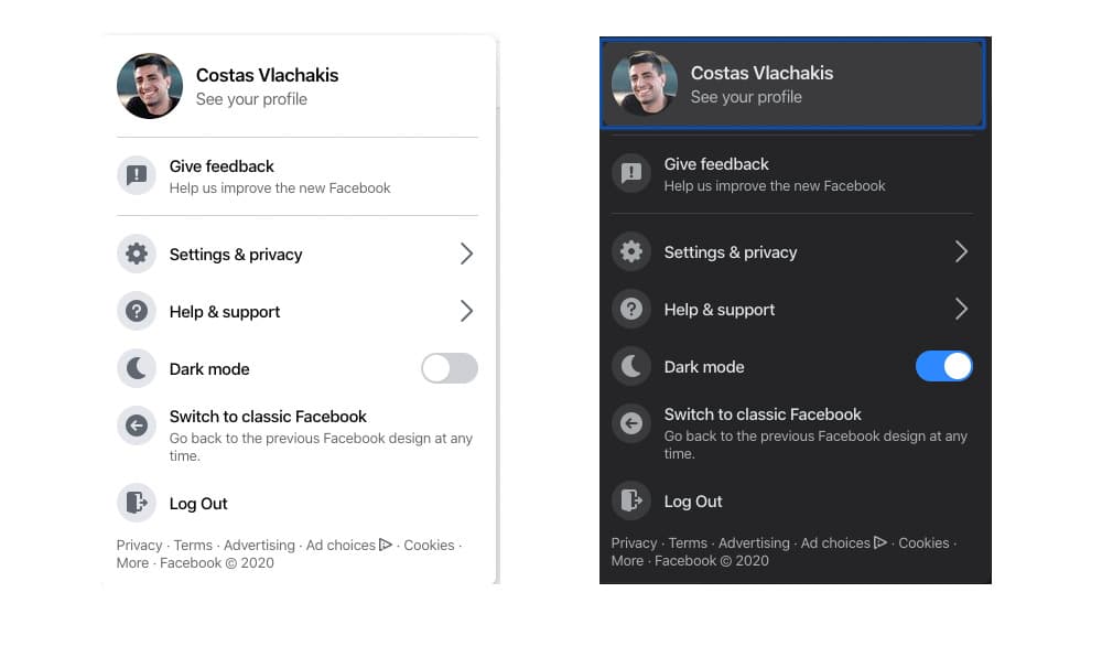 Τώρα μπορείτε όλοι να δοκιμάσετε τη νέα εμφάνιση του Facebook και ναι, να ενεργοποιήσετε το πολυσυζητημένο dark mode! Το μόνο που έχετε να κάνετε είναι να πατήσετε στο αναπτυσσόμενο μενού στην επάνω δεξιά γωνία και θα δείτε την επιλογή “Μετάβαση στο νέο Facebook”. Αν δεν προσαρμόζεστε έυκολα στις αλλαγές μπορείτε να επιστρέψετε στο παλιό design με τον ίδιο τρόπο, πατήστε στο αναπτυσσόμενο μενού και επιλέξτε “Μετάβαση στο κλασικό Facebook”.
