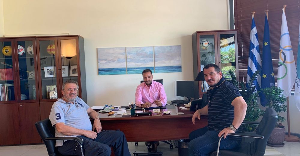 Ο πρόεδρος της Ελληνικής Ομοσπονδίας Αρσης Βαρών Πύρρος Δήμας, συναντήθηκε με τον γενικό διευθυντή του ΟΑΚΑ Kωνσταντίνο Χαλιορή όπου συζητήθηκε η συνεργασία των δυο πλευρών για τις Εθνικές ομάδες.