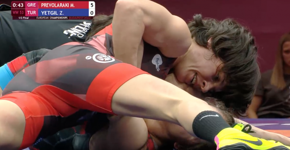 Η Ελληνίδα δευτεραθλήτρια Ευρώπης του 2021, δεν άφησε κανένα απολύτως περιθώριο στην αντίπαλη της Ζεϊνέπ Γετγκίλ από την Τουρκία. Με πολύ καλή τακτική έφτασε προηγούμενη 3-0 στο τελευταίο λεπτό, όπου και με τρομερή λαβή πέρασε πάνω από την Γετγκίλ και την υποχρέωσε (και αυτήν) σε πτώση για να πάρει την πρόκριση για τον αυριανό τελικό στα 53 κιλά. Εκεί η Πρεβολαράκη θα αντιμετωπίσει τη Σουηδέζα Έμα Γιόνα Ντενίς Μάλμγκρεν που νίκησε και αυτή με πτώση, την Πολωνή Καταρίνα Κράβτσικ. Η 21χρονη Μάλμγκρεν είναι η παγκόσμια πρωταθλήτρια του 2021 στην κατηγορία των νεανίδων.