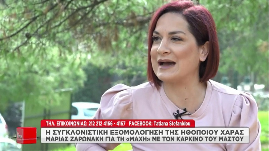«Έκανα ψηλάφηση στο στήθος μου, γιατί είχα μία ενόχληση και πήγα κατευθείαν στον γιατρό. Εκεί η ακτινολόγος μου είδε κάτι που δεν της άρεσε, έκανε την παρακέντηση και τη βιοψία που έπρεπε και καταλήξαμε μετά από μία εβδομάδα στο χειρουργείο. Μέχρι να συνειδητοποιήσω τι σημαίνει η λέξη “καρκίνος” ήταν ένα κενό, ήταν σαν να μη μιλούσαν για μένα» προσθέτει η Χαρά Μαρία Ζαρωνάκη που δεν μπόρεσε να κρύψει τα δάκρυά της στο γύρισμα.