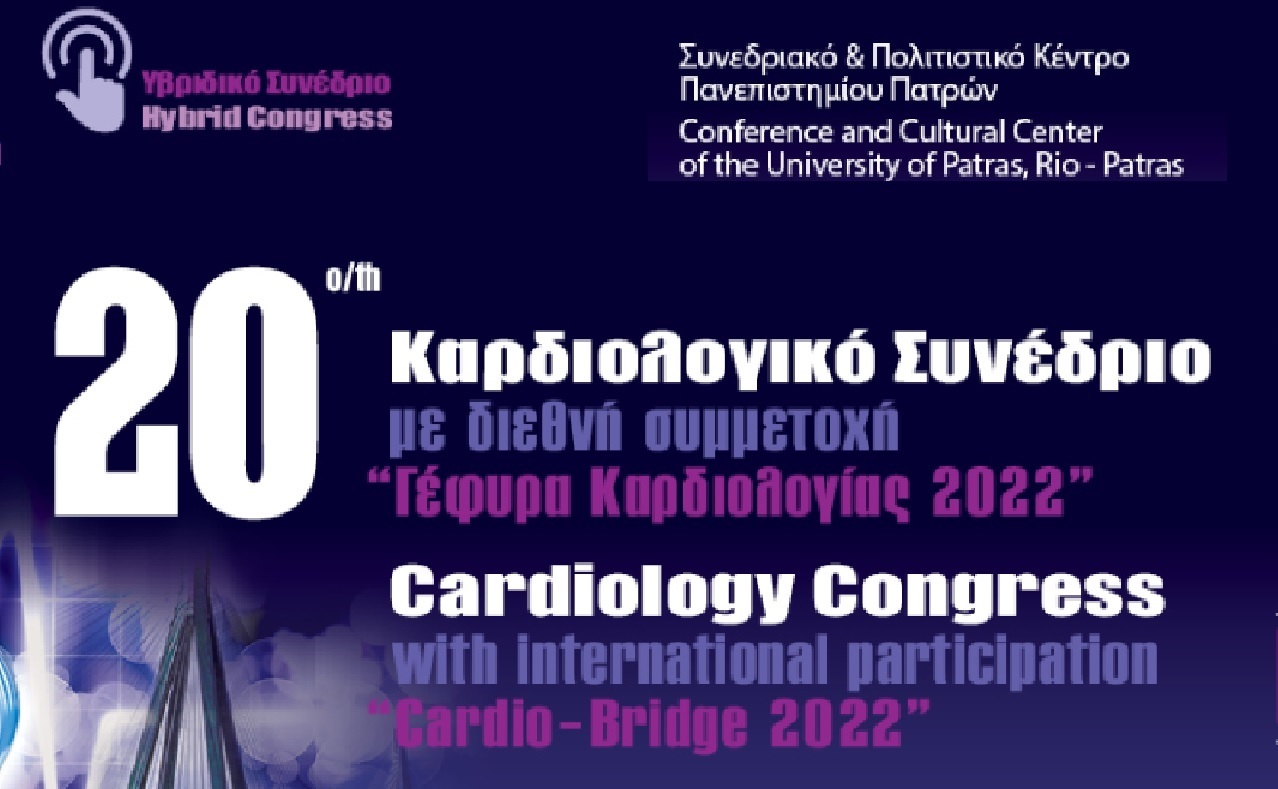 Το 20ο Διεθνές Συνέδριο «Γέφυρα Καρδιολογίας» διοργανώνει 9-11 Σεπτεμβρίου 2022 η Καρδιολογική Κλινική του Πανεπιστημιακού Γενικού Νοσοκομείου Πατρών.