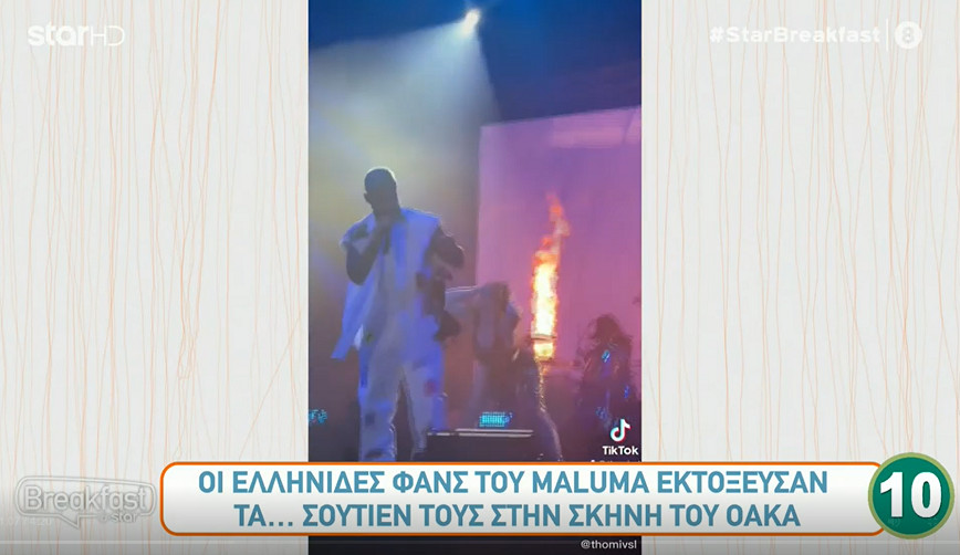 Σύμφωνα με το «[email protected]» οι θαυμάστριες ήταν «εκστασιασμένες» με τον Λατίνο σούπερ σταρ, τόσο που πετούσαν τα σουτιέν τους πάνω στη σκηνή. Ο Maluma φάνηκε να το διασκεδάζει καθώς τα μάζεψε από τη σκηνή και τα κρέμασε στον ώμο του αλλά και στο μικρόφωνο.
