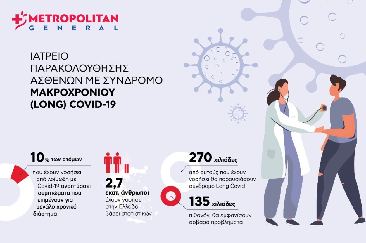 Εξειδικευμένο Ιατρείο Μακροχρόνιας (Long) COVID δημιούργησε το Metropolitan General, για τη βέλτιστη διαχείριση κάθε ασθενή με εμμένοντα προβλήματα μετά από ήπια ή σοβαρή λοίμωξη από τον κορωνοϊό.