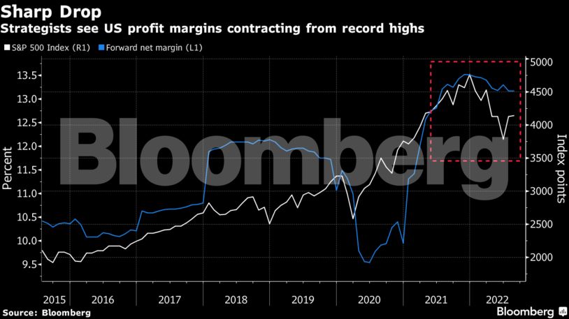 Παρόμοια είναι και η άποψη του David J. Kostin ο οποίος τονίζει πως το αυξημένο κόστος των εταιρειών θα μειώσει τα εταιρικά περιθώρια κέρδους. Ο αναλυτής υπολογίζει πως τα καθαρά περιθώρια αυτά θα μειωθούν κατά 25 μ.β. το 2023 σε όλους τους επιχειρηματικούς τομείς, ιδιαίτερα σε αυτούς των εμπορευμάτων, της ενέργειας και της υγείας.