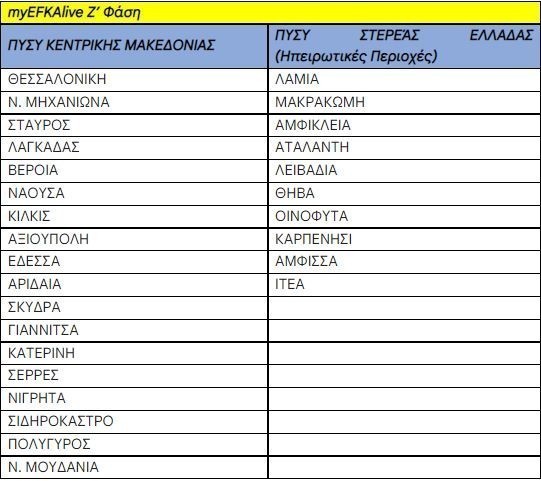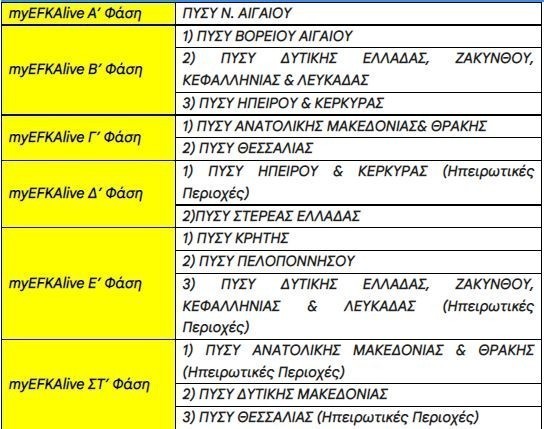 Μετά και την συγκεκριμένη επέκταση (Ζ΄ Φάση), έχουν ενταχθεί στο myEFKAlive στο σύνολό τους οι Περιφερειακές Υπηρεσίες Συντονισμού και Υποστήριξης (ΠΥΣΥ) του e-ΕΦΚΑ Βορείου Αιγαίου, Νοτίου Αιγαίου, Ηπείρου & Κέρκυρας, Δυτικής Ελλάδας, Ζακύνθου, Κεφαλληνίας & Λευκάδας, Πελοποννήσου, Κρήτης, Ανατολικής Μακεδονίας & Θράκης, Θεσσαλίας, Δυτικής Μακεδονίας, Στερεάς Ελλάδας και Κεντρικής Μακεδονίας. Στόχος είναι μέχρι το τέλος του έτους η υπηρεσία να επεκταθεί σταδιακά και σε περιοχές της Αττικής.
