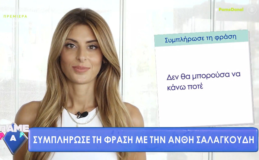 Παίζοντας «συμπλήρωσε τη φράση» στην εκπομπή «Πάμε Δανάη» του Mega, η παρουσιάστρια είπε ακόμα ότι «δεν θα μπορούσε να κάνει παρέα με κάποιον που λέει συνέχεια ψέματα, ότι «εκμεταλλεύτηκε τη δημοσιότητά της για να βρει ξαπλώστρα σε πολυσύχναστη παραλία και ότι έχει μετανιώσει για το φαγητό που έφαγε μετά τον Άγιο Δομίνικο».
